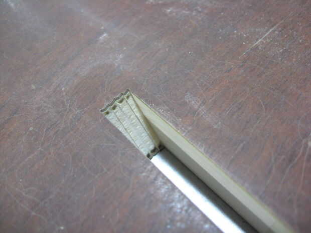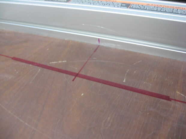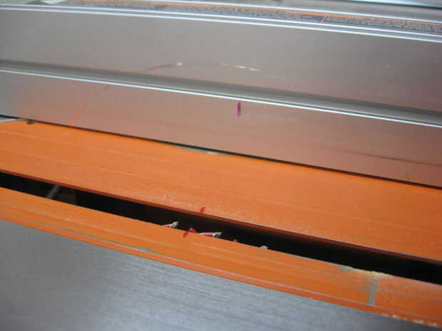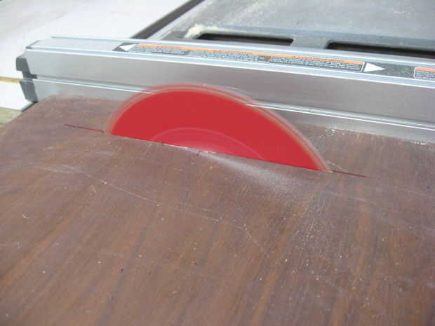 Esto se hizo midiendo cuidadosamente para la ubicación, fijación vio el pedazo a mi mesa, y levantando la hoja que gira en la madera. La hoja fue dado vuelta apagado, baja y la pieza se movió con la valla y se repite el proceso hasta que yo había hecho un surco cuatro gruesos de hoja ancha.