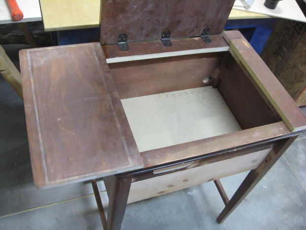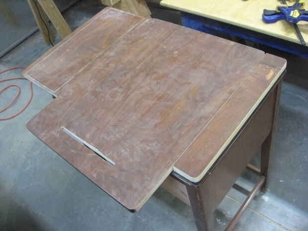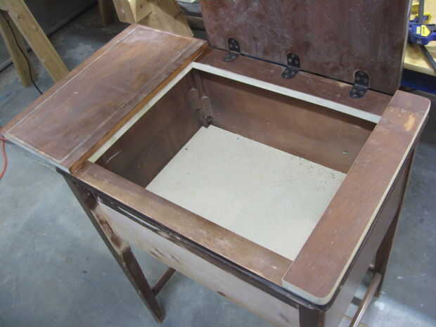 La puerta vieja y la otra pieza suelta quitado antes fueron y volver a instalar en la parte superior para crear una superficie más amplia que fue al ras con la nueva puerta de acceso superior con bisagras y almacenamiento de información. Esto se hizo con pegamento y tornillos instalados desde el interior de la zona de almacenamiento.