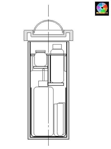 El interior del tubo nuevo tiene una cresta parcialmente hacia abajo, esto apoya el elevador Inserto a una altura que permite que la botella de agua y tubos de ensayo a continuación.