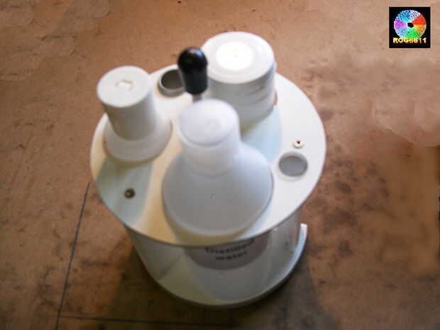 En la parte superior derecha de la primera foto es el envase más bajo con su botella de almacenamiento de agua y tubo de ensayo para lavarse las manos.