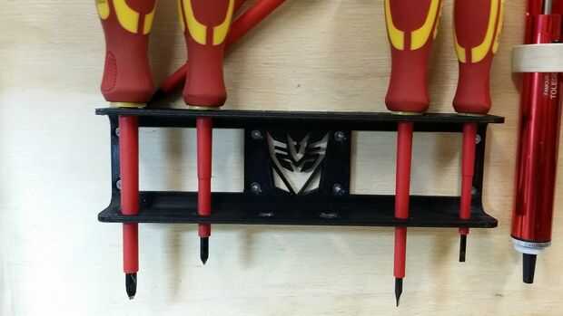 Manteniendo el tema, agregó una insignia Decepticon en 3D impreso destornillador rack.
