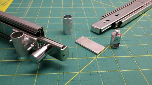 Rehogar algunos barra plana de aluminio y tubo de 12mm para hacer montajes para la extracción de la luz y el humo brazos ajustables (que son ex-escritorio Lámpara brazos). Perno de los montes a diapositivas del cajón 300mm cojinete de bolas.