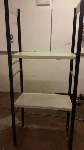 Tenía una vieja unidad de estanterías metálicas modulares colocación alrededor pero sólo había 2 estantes con él por lo que no era bueno para mucho... hasta ahora.