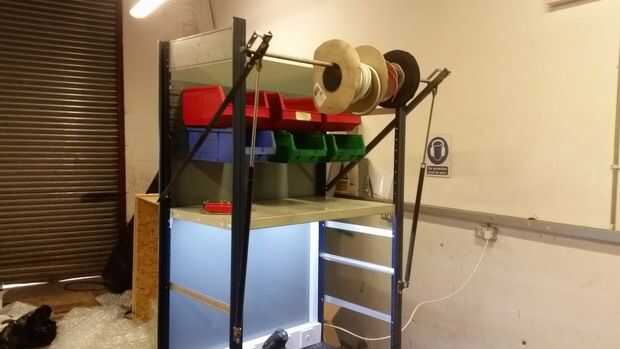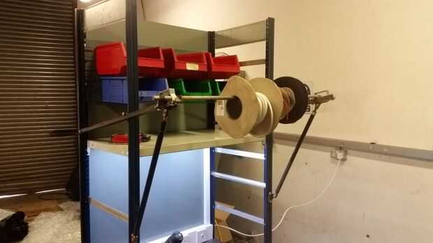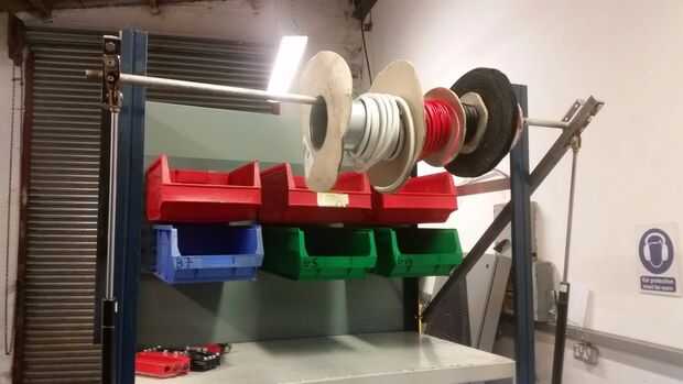También quería mantener mi cableado cerca de pero los rollos pueden ser grande y conseguir de la manera los montados a un bar en lo alto. Al principio que esto parecía una unidad buena idea que he intentado levantar la barra con el cable en bobinas para arriba en el soporte, esto no era seguro. No quiero más bajo como no golpeando mi cabeza.