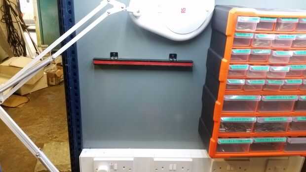 También he añadido un portaherramientas magnético para la pared del fondo, esto me permite tener herramientas a mano, pero el espacio de trabajo pequeño.