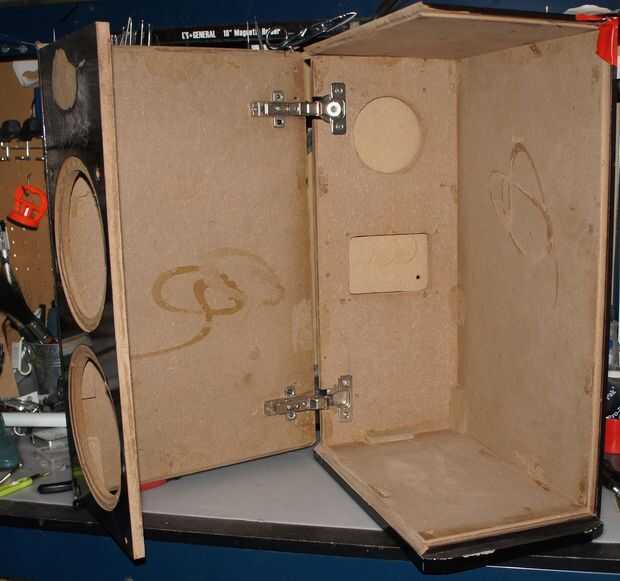 He utilizado un altavoz de 20" que no funcionaba (eso espero) y se aseguró de que la parte superior sería acomodar el altavoz más pequeño y a su alcance en caso de que el Banco de trabajo no es necesario. Tuve un tiempo difícil montar las bisagras porque no estaba familiarizado con ellos y no podía averiguar cómo llegar al Banco a permanecer abierto sin comprometer el área de trabajo. Más tarde me dieron la idea del gancho de la puerta, y que funcionó bastante bien.