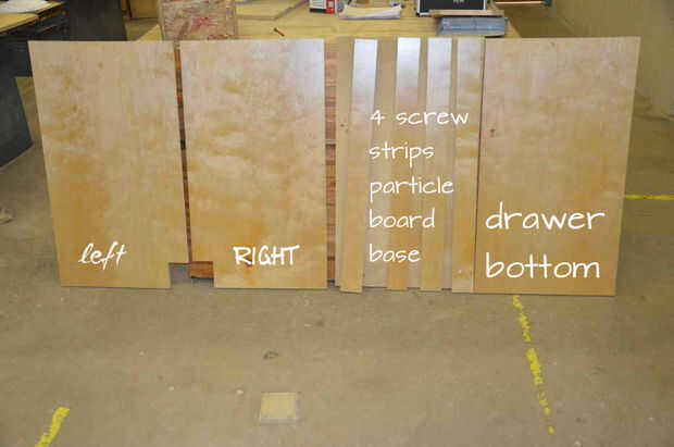 He utilizado 3/4" preacabado para los lados y para el cajón de la madera contrachapada del abedul. Sólo un lado es abedul, y el otro lado es un material de papel marrón con el respaldo. Puse este lado hacia el interior y mantenerse del lado de abedul agradable hacia el exterior. (Si estaban haciendo gabinetes de cocina que normalmente poner el abedul en el interior, el lado de papel respaldado por ser oculto por otro gabinete, o cubierto con una fina lámina de madera contrachapada)