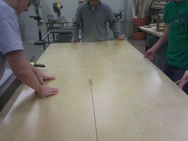 Tengo fotos de cómo sería este paso de una hoja entera. Mis piezas estaban ya precortadas las sobras de otro proyecto. Hice los lados mucho más largos que el estándar ya que quería que mi altura acabado a ser unos 40".