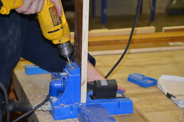 Yo uso el agujero del bolsillo de la herramienta Kreg Jig mucho en mi tienda. Es fácil de montar proyectos y para ocultar los agujeros de montaje. En una situación normal los agujeros de bolsillo sería el exterior del gabinete ya que se oculto por otro gabinete, o cubierto por una pieza fina de contrachapado más adelante.