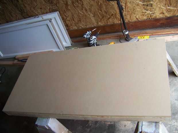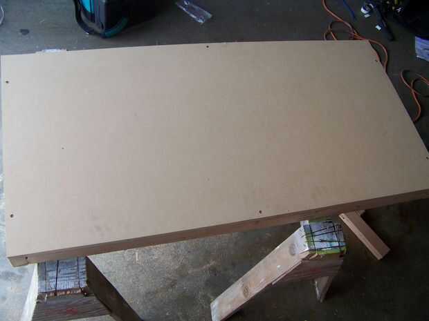 Pone el MDF en la parte superior su apoyo completo y fíjelo con un tornillo de 2.5"(Recuerde pretaladrar los agujeros) aproximadamente 4" de la esquina. Tenga cuidado de no dañar el MDF atornillando hacia abajo demasiado profundo.