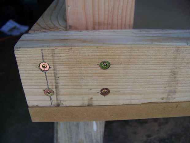Nota: Si usted quiere ahorrar cerca de $4 usted puede utilizar los tornillos 2,5" en todas partes y en este paso en vez de madera entre las piernas, a sentarse sobre las piernas y puede atornillar a través del soporte y patas con los tornillos de 2,5". Creo que le queda mejor la forma lo hice y parece más robusto me.