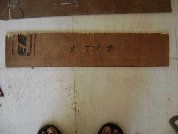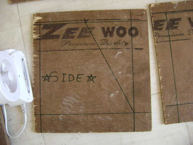 Ahora, conseguir una hoja de madera (nuevos o de desecho) (mi es capas de 8mm de desecho) y marcar el diseño en la capa.