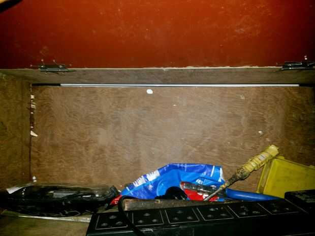 Me inspiré a hacer esto porque mi papá dijo que no podía hacer un taller enel patio trasero así que en vez de eso decidí hacer mi propio taller portátilArtículos:Hoja de madera contrachapadaBisagras miniClavos (o tornillos)batería de 9 voltiosAlambre