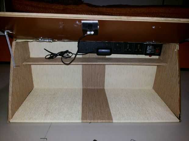 Me inspiré a hacer esto porque mi papá dijo que no podía hacer un taller enel patio trasero así que en vez de eso decidí hacer mi propio taller portátilArtículos:Hoja de madera contrachapadaBisagras miniClavos (o tornillos)batería de 9 voltiosAlambre