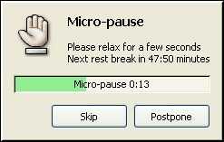 Aunque pueda parecer que estás modulando su trabajo con descansos de anchura de pulso, he encontrado mi productividad igual o mejor que antes de se rompe. Con el ordenador diciendo que tomar descansos, puedes enojado en él y no en las manos cuando ellos te obligan a parar.