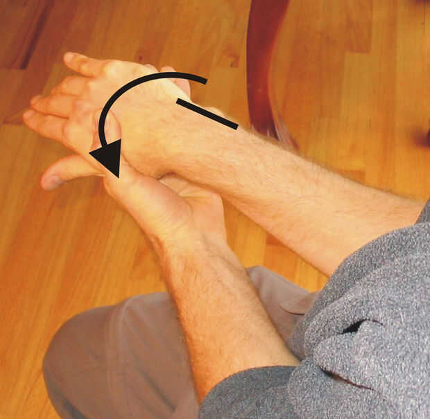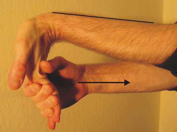 Tengo cada uno de estos por 30 segundos o más. Con una mano directamente en frente de mí y mis dedos apuntando hacia abajo, saco mis dedos hacia mi cuerpo para estirar la parte interior de mis antebrazos. Luego, sacó mis brazos a mis lados, hacer puños y doblar mis muñecas hacia abajo para estirar la parte externa de mis antebrazos. De vez en cuando, con la parte trasera de mis manos, empujar contra algo sólido para conseguir un estiramiento más profundo. Con mis dedos apuntados lejos de mí, giro mis manos en la muñeca alrededor de mis antebrazos una vez en cada dirección. Terminar colgando de una barra de dominadas o algo similar durante 30 segundos con los brazos rectos y 30 segundos con los brazos doblados, esta parte a menudo se siente muy bien como mi peso tira directamente a través de mis muñecas.