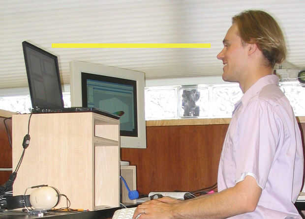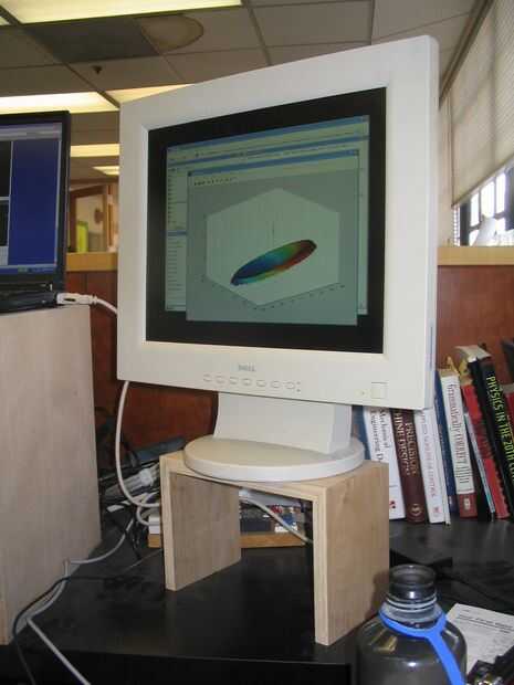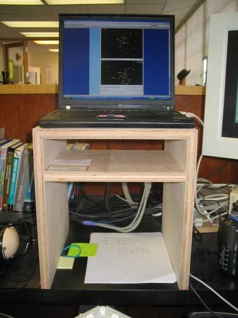 He construido stands especiales para mi ordenador portátil y el monitor. Como un aparte, usando dos monitores es genial; el ojo puede reenfocar más fácilmente en algo nuevo cuando te ves en un lugar diferente y luego cuando flash abres otra ventana del programa, y no movimientos clave involucrados.