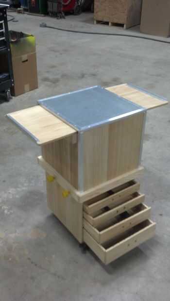 BH-1 te da un montón de espacio de almacenamiento para herramientas y piezas, una superficie de trabajo de 16 x 30, un inversor de la energía de 500 vatios, almacenaje de la batería, cargador de batería para cuando la energía está disponible y una regleta con almacenaje de la cuerda.