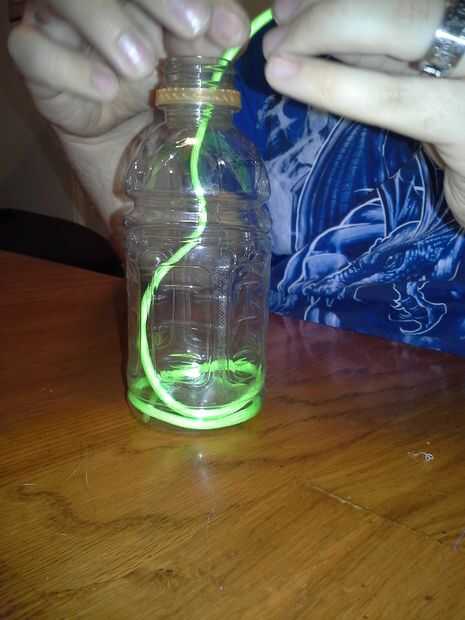 Si utilizando una botella, quite la tapa de la botella y perfore un agujero a través del centro de la misma. Recortar los bordes del agujero por lo que existen ningunos filos para haceros con el cable. Retire la tapa y comenzar a introducir el cable en la botella. Al llegar al final de la médula suben a través de la tapa y un nudo en el extremo, de esa manera eres capaz de tirar del cordón a través de la tapa sin todo lo que sale a la vez. Es accesible y meterse gratis.