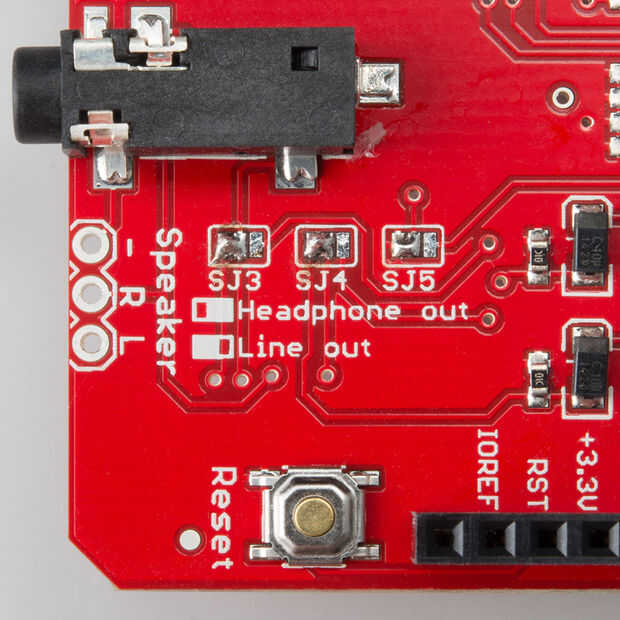 Aviso de la soldadura en el escudo de MP3 para configurar como "Line out" (ajuste de fábrica es "Auriculares")