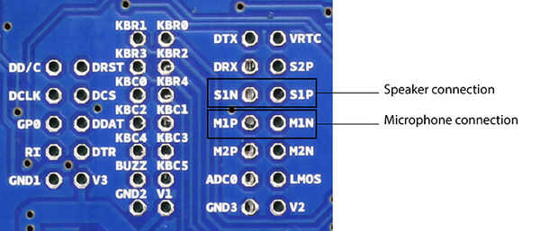Dos hilos se sueldan en la conexión de altavoz de shield GSM (S1N, S1P).