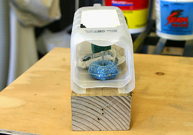 La parte superior se coloca sobre la abertura de la cubeta inferior. Esto impide el tiempo y también evita que las mascotas y aves comiendo el cebo. El agujero puede ser cortado más corto, las ratas pueden entrar en espacios muy pequeños.