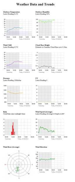 El código también incluye matemáticas para el cálculo de algunos parámetros derivados, tales como altura base de nubes y wind chill. Dos otras acciones están disponibles vía URL además de la entrega normal de la página: