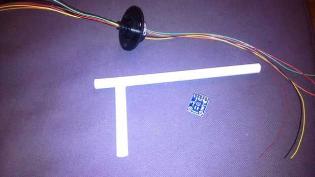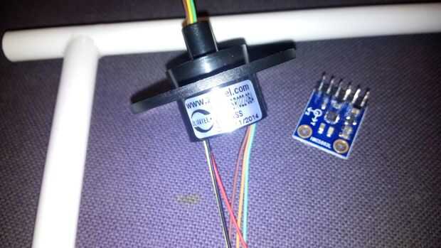 La otra parte importante que se llama un anillo de deslizamiento. ¿Qué es un anillo de deslizamiento? Es un pequeño dispositivo que le permite tener un eje giratorio y conexiones al mismo tiempo. Existen varios parámetros que definen dicho dispositivo. Uno es el número de maneras (o alambres) y otra es la corriente a través de los cables. Desde entonces somos sólo sensor de lectura y en este caso I2c, necesitaremos 4 cables y la corriente es tan baja como usted puede conseguir.