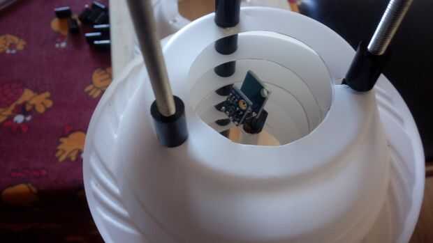 He hecho el protector solar de platos desechables de plástico y pedazos de 2 cm de tubo de plástico. No voy a entrar mucho en esto ya que hay muchas maneras de hacer esto. Lo importante es que los sensores están protegidos del viento y del sol.