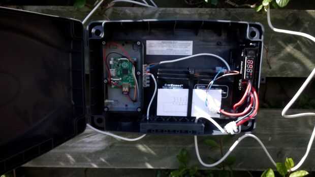 Si tienes un cargador solar con una salida de carga, es una buena idea usarlo, puesto que generalmente hay una manera de activar o desactivar. Como estamos usando una batería de 12V, necesitamos un regulador 7805 para reducir a 5V para el IPC. Si te fijas al 7805 con las marcas frente a usted, el pin izquierdo es la entrada (conectar a 12V), el medio es GND, y la derecha es la salida (5V).