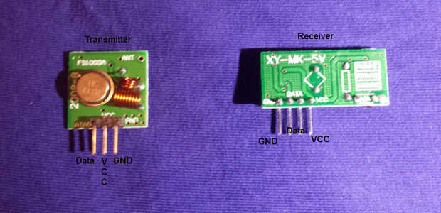 Inserte el módulo de RF433-TX, colóquela frente a usted y pernos deben ser datos, VCC, GND de izquierda a derecha (ver imagen)