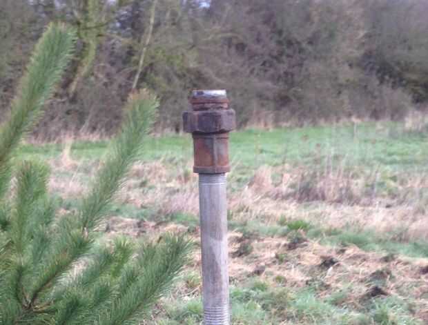 La parte inferior del poste es rosca 1" BSP acero inoxidable 308 y está incrustada en una generosa cantidad de hormigón para mantenerlo vertical.