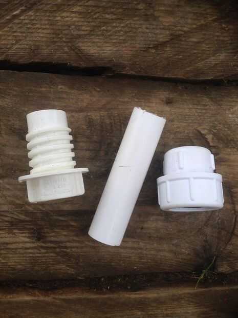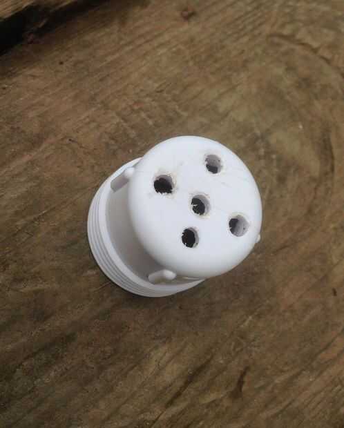 El bolsillo se hace desde conexiones de aguas residuales y el tapón se perfora con unos agujeros como se muestra.