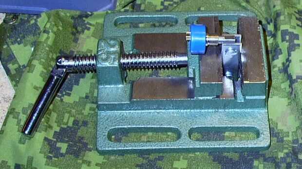 He utilizado las placas reparación y construye una pinza para sostener el potenciómetro (ver imagen). Luego fijar el conjunto en una prensa y utiliza una rueda de corte en mi taladro para aplanar un lugar en el eje (ver foto). Pido disculpas, no tomo una foto de los resultados pero es aproximadamente 1/8 de pulgada de tierra de.