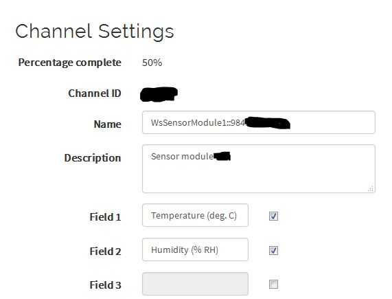 2. Para registrar una cuenta en ThingSpeak, crear nuevo canal para el módulo Base, el nombre "BaseModule::LocalSensors" (es decir, mismo como se llama en la web de IU - el código utiliza este nombre durante el registro) y como muchos otros canales que tienen módulos de Sensor, también usando los nombres por web interfaz de usuario. Campos de registro en cada canal corresponde a los elementos de datos de sensor - orden en la web interfaz de usuario deben determinar el orden de campo (ver imágenes).