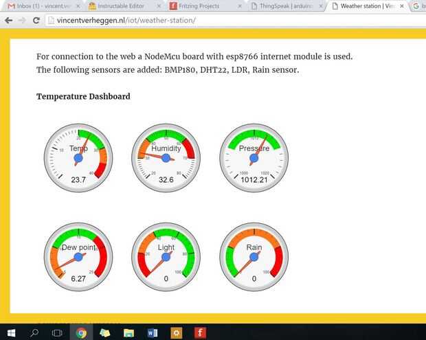 Hay algunas otras NodeMcu o ESP8266 estaciones meteorológicas publicadas en la web. Sin embargo no son los sensores utiliza y a menudo están programados en el idioma más difícil: LUA. Este canal de tiempo tiene las siguientes características (únicas):