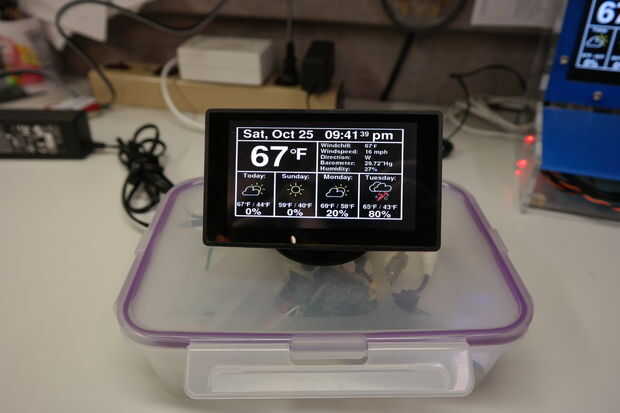 Mi primer pensamiento fue utilizar una pequeña pantalla de vídeo compuesto. He recogido en el cuadro en Ebay para $22 dólares - buscar simplemente en "4.3 pulgadas TFT LCD de coches Monitor coche Monitor de vista trasera". La pantalla tiene una resolución divulgada de 656 por 416 píxeles que hace desafiante mostrando muchísima información útil un reto! La pantalla requiere 12Vdc como la tensión de alimentación. El Raspberry Pi, por supuesto, necesita 5Vdc como la tensión de alimentación. Para resolver esto, compré un cargador de coche USB barato de Amazon. De alrededor de $6 dólares encontré un 5Vdc por cambiador de coche de 2 Amp. Por lo tanto, la lonchera tiene una fuente de alimentación externa 12Vdc pared verruga. El 12Vdc alimenta directamente la pantalla. El 12Vdc también va al cargador de coche USB que camina el voltaje hasta un 5Vdc regulados. Como un truco final, había soldado un par de cables directamente entre el cargador y la frambuesa Pi - no mi mejor idea.