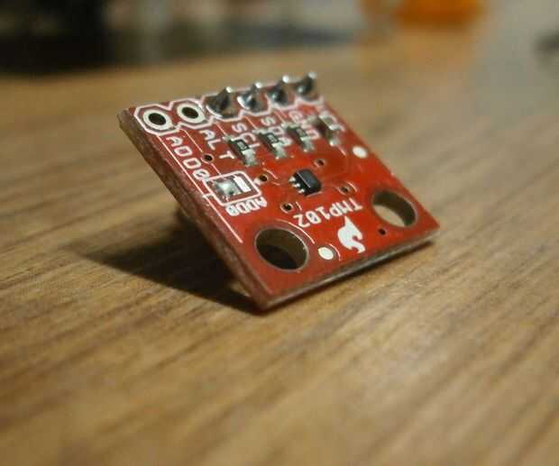TMP102 es un sensor de temperatura digital super pequeño. El TMP102 es un sensor digital (I2C también conocido como TWI), tiene una resolución de 0,0625 º Cy es preciso hasta 0,5 ° C. Este es un sensor muy práctico que requiere una muy baja corriente.