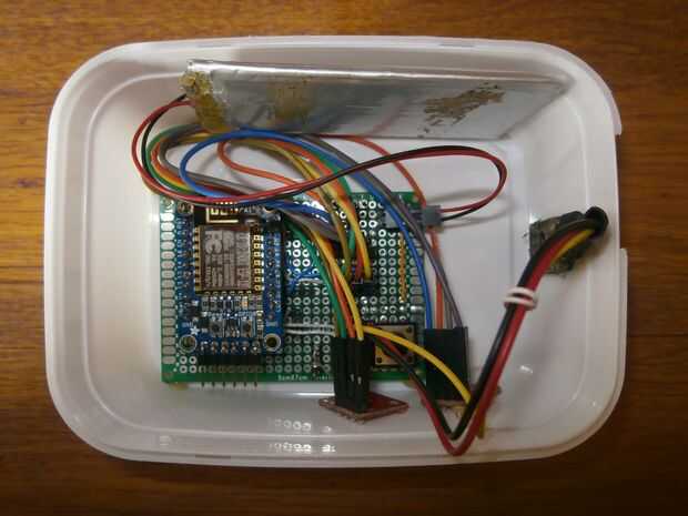 Mi recinto es una simple caja de plástico de la tienda más cercana, pero puede utilizar otro cuadro, un impreso en 3D, laser cortado o una caja normal de plástico. La caja debe tener suficiente espacio para el tablero principal, la batería y los sensores.