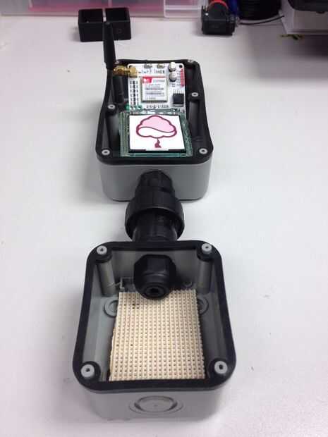 Ahora que todo está funcionando en la práctica, es tiempo de construir lo real. Las imágenes muestran la idea general de cómo encaja la unidad entera. Hay dos unidades de vivienda separadas; uno para el circuito de detección (que tendrá orificios para permitir que el aire circule por el interior) y otro para la frambuesa Pi, unidad GPRS y PiJuice, (totalmente impermeable) el panel solar va conectado en la unidad de informática con un nudo apretado del agua. Las dos unidades pueden ser fácilmente separadas para que la cubierta del sensor o la caja de computación se puede quitar sin tener que desmontar toda la unidad. Esto es grande si usted quiere añadir más sensores o si usted necesita su frambuesa Pi o PiJuice para otro proyecto.