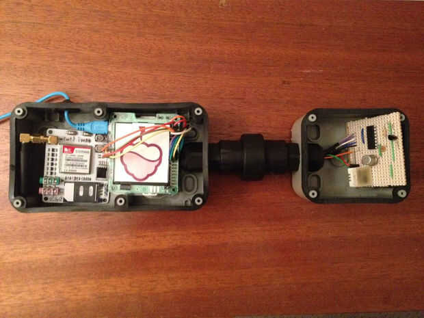A partir de la unidad de informática. En este cuadro tenemos el Raspberry Pi, el PiJuice que conecta a la frambuesa Pi GPIO y el módulo GSM que conecta en el desglose GPIO de la PiJuice a través de los cables de puente a hembra. Agradable y cómodo! en esta etapa probablemente le aconsejo poner a algún tipo de sellador alrededor de punto de entrada para el cable USB para el panel solar. Algún tipo de resina o pegamento probablemente trabajaría.