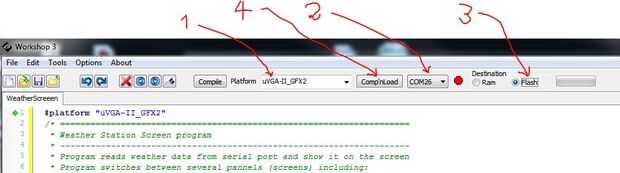- Cargar el firmware correcto en el adaptador de LCD o VGA de 4D con herramienta de PmmC Loader de 4D Systems (necesita la versión GFX). He probado con firmware versión 2.7