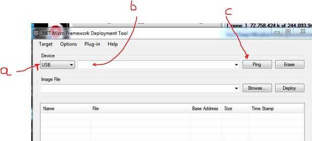 - Ejecutar herramienta de MFDeploy (parte del. Kit de NETMF y debe estar en C:\Program Files (x86) \Microsoft.NET Micro Framework\v4.1\Tools directorio si usas PC con Windows 7 64 bits),