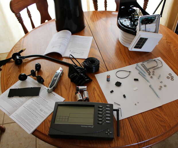 Una vez que todo se extiende hacia fuera y representaron para he instalado las pilas en el transmisor y el receptor (consola).  Me permitió comprobar el funcionamiento de los sensores como había preparado para la instalación exterior.