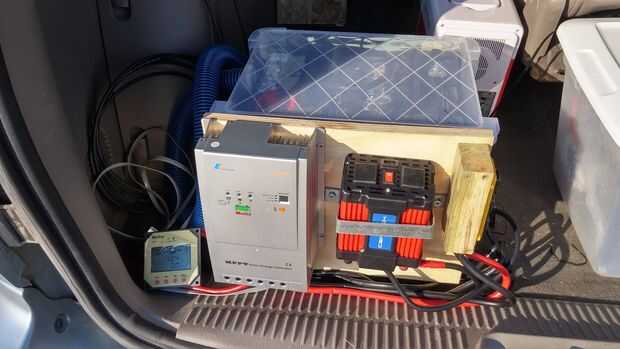 También he añadido un panel de madera contrachapada de 3/4 de pulgada al frente de la caja de archivo utilizando dos soportes en ángulo. Este panel de madera contrachapada llevará a cabo el controlador de carga, el inversor y los recipientes de alimentación de 12 voltios.