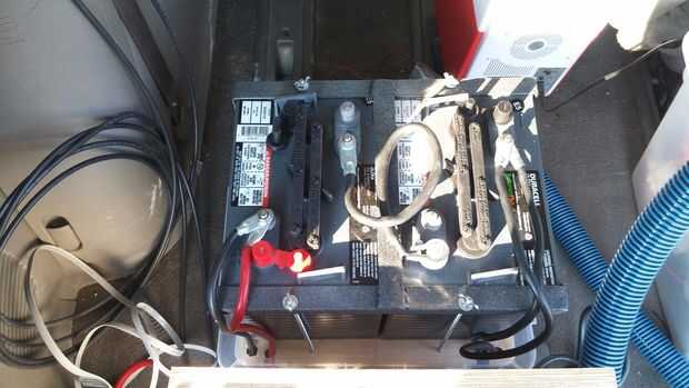 Opté por comprar dos baterías nuevas de Amp-horas a 6 voltios 230 de una tienda de baterías próxima para $230 para ambos impuestos incluidos. Estos son grandes pilas para carritos de golf de energía y están diseñados para uso duro y ciclo profundo. Me midió la altura de la batería, anchura y longitud y búsquedas en los comercios de un conveniente almacenaje plástico lo suficientemente grande para las baterías. Encontré una caja de archivo de plástico usados para colgar archivos para menores $15 que era bastante grande pero no demasiado grande.