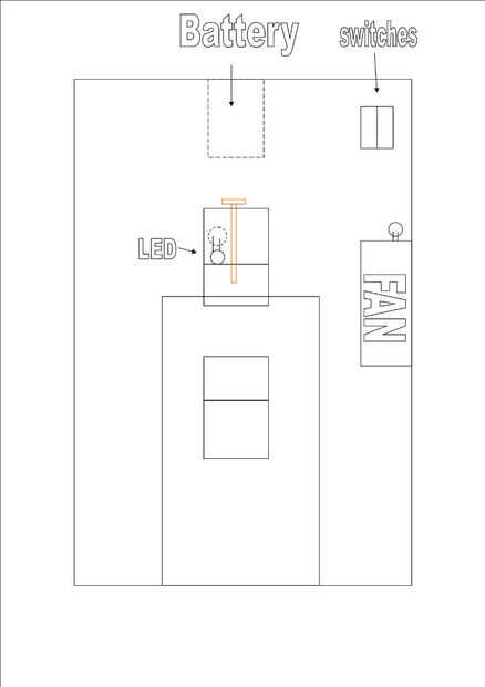 Como la pila de 9V es la altura de la Junta se puede insertar en el tablero. Cortar un trozo del tamaño de la pila de la placa así que usted puede isert la batería allí. Taladre un orificio en uno de los cuboids desde la parte superior a la parte inferior para tener los cables en el tablero. Esto reducirá la cantidad de cables que se pueden ver.