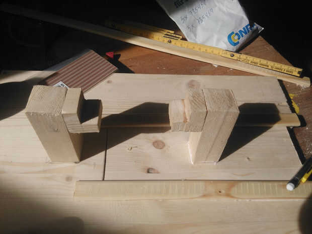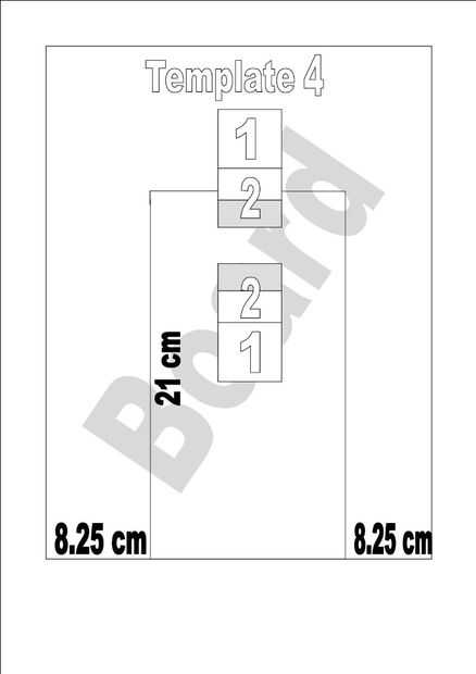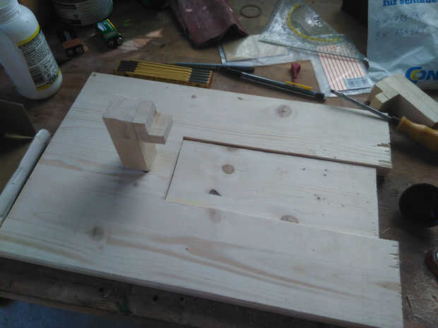 Echar un vistazo a la plantilla 4. «1» son el cuboides (2 x 2 x8 cm) desde una vista superior, "2" son la L en forma de piezas de madera cortadas de los cubos.