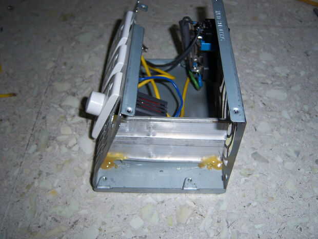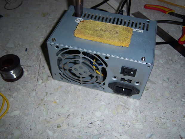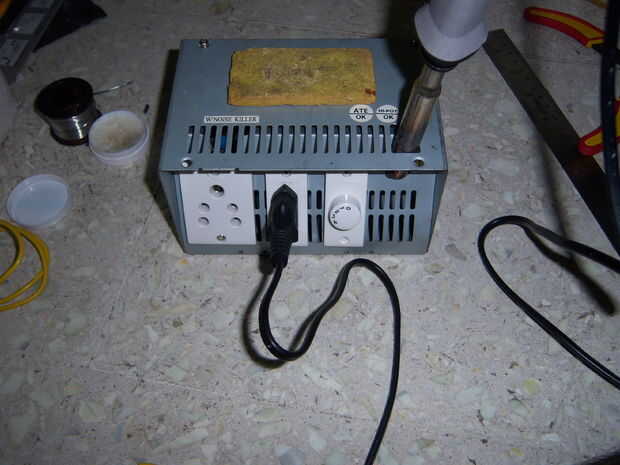 Un pedazo de aluminio de chatarra fue caliente pegado entre el regulador de velocidad del ventilador y el lugar donde el soldador viene en evitar daños al controlador.