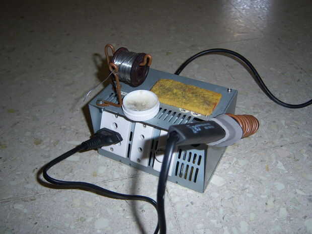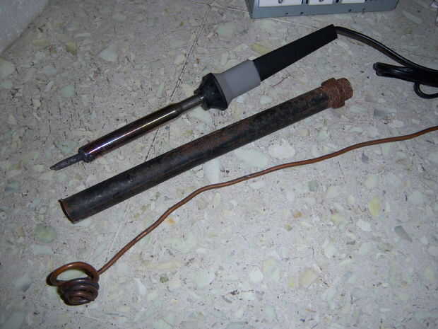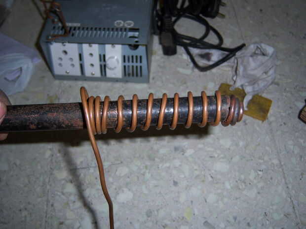 Me quité mi viejo soporte de soldador para el alambre de cobre y había enderezado a medida de lo posible antes de hacer una bobina.